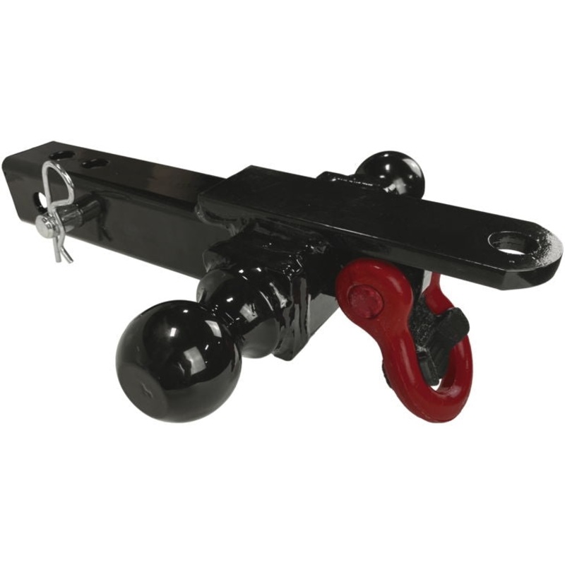 The Elite 4-way Hitch features a 1-7/8in. ball, 2in. ball, pin pull, towing shackle and a slightly extended shank in order to accommodate all vehicle types.