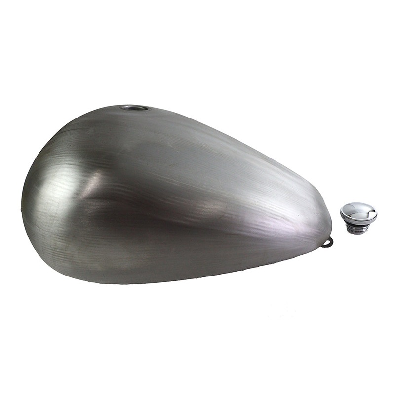 Bobbed gas tank is one piece constructed of raw steel and is for M8 modelsThe center bung is included6.3 gallon fuel capacityTank is bolt on style, like the originalDoes not have provision for gaugeRe-uses original EFI fuel pumpTank accepts right side sing