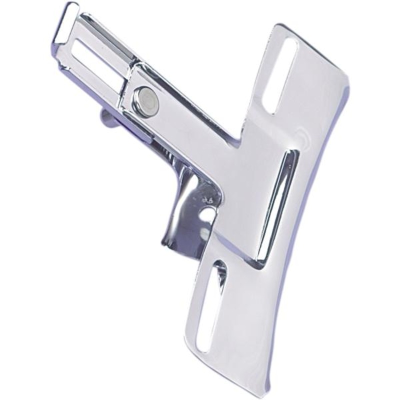 Chrome replacement license plate bracketMounts to most custom fenders and is adjustable to accept almost any license plate