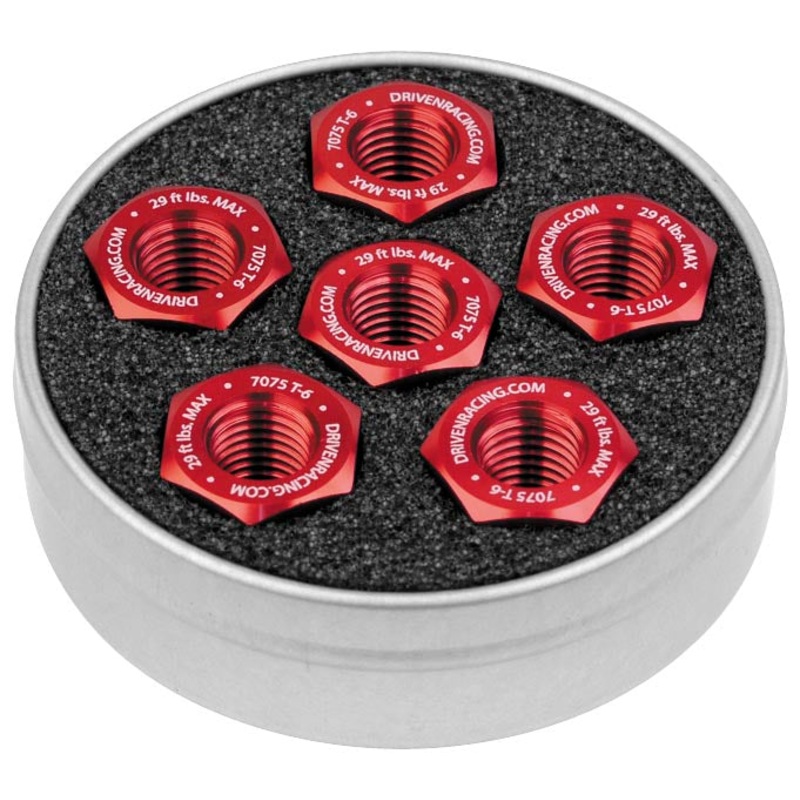 CNC-machined from 7075 T-6 aluminum alloyLightweight and an attractive alternative to stock heavy and bulky steel nuts10mm nuts fit most modern sport bikes with 10mm studs