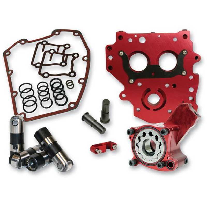 Available in either HP+ or Race SeriesRace Series kits include blueprinted 7075 hard anodized billet aluminum oil pump; 7075 hard anodized cam plate; full-travel, slow leak down hydraulic roller lifters and installation gasket kitRace Series hydraulic lift