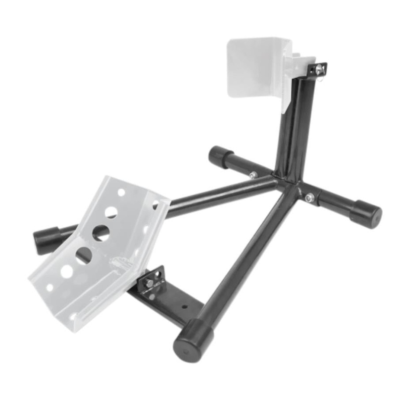 Front wheel holder stand, works great with sport bikesWeight of the bike locks in the pivoting mechanism, keeping bike uprightEasily adjusts in seconds to fit 16in. to 21in. rimsWorks with tire widths of 130mm or narrowerThree mounting points incorporated