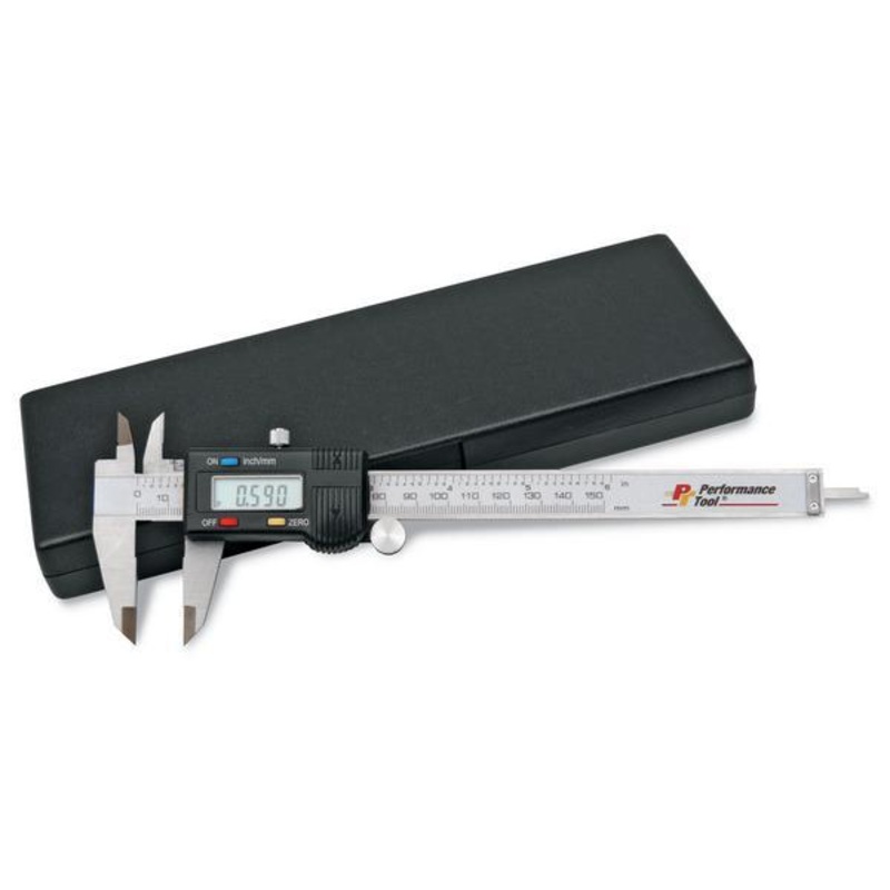 Measures outside, inside, depth and step0-6in. range (0-150mm) with SAE to metric conversionLarge, easy-to-read LCD displayZero setting at any position within measuring rangeData output socket for interface with computer or printerThumbwheel with lockOn/of