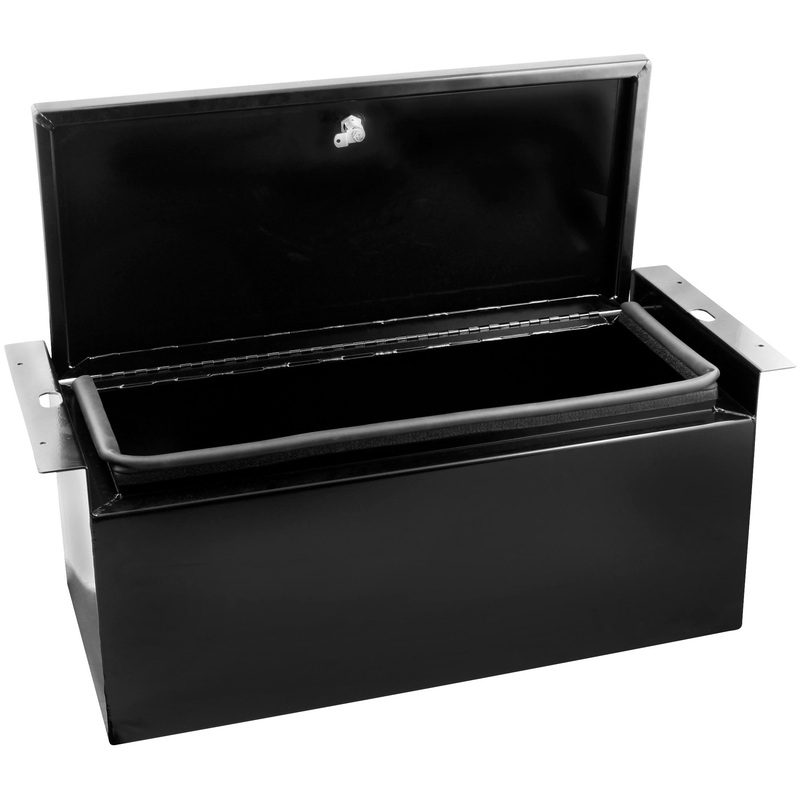 0.1 in. aluminum for lightweight, durable storageRubber sealed to keep items dry and out of the elementsLocking lid for security and peace of mindFits under the seat with some spare room on either side of the storage boxBolted down for easy installation an