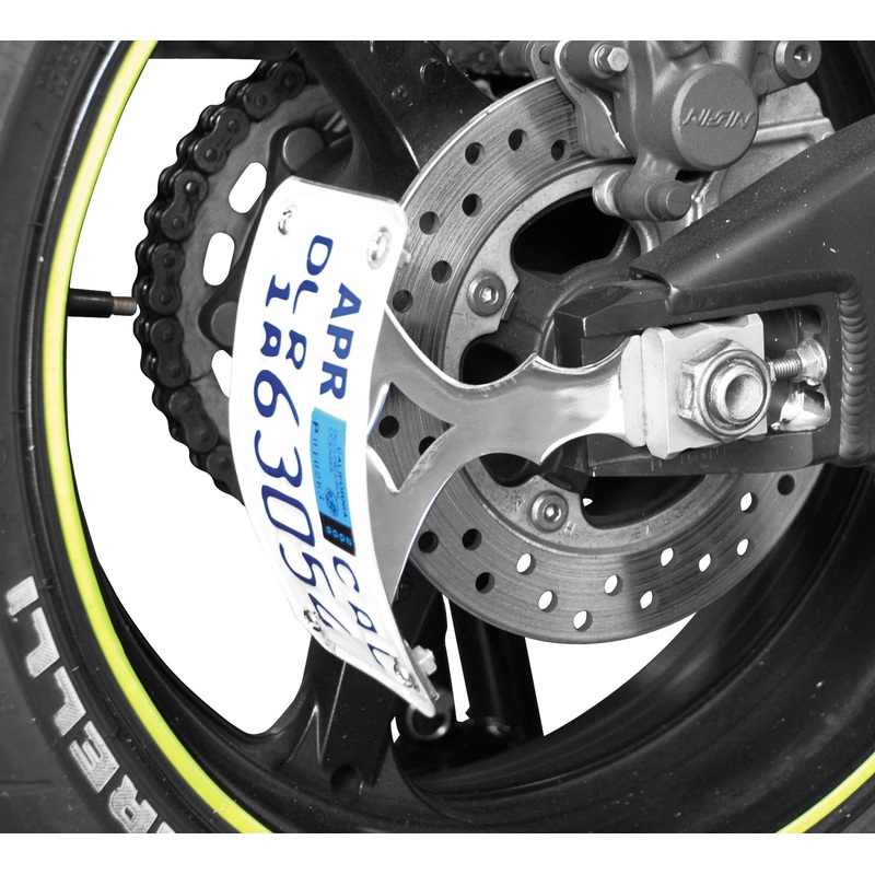 Swingarm license plate bracket available in black powder-coated or chrome finishUniversal sport bike applicationSolid mild steel constructionTrick look enhancement to any sport bikeQuick and simple installation