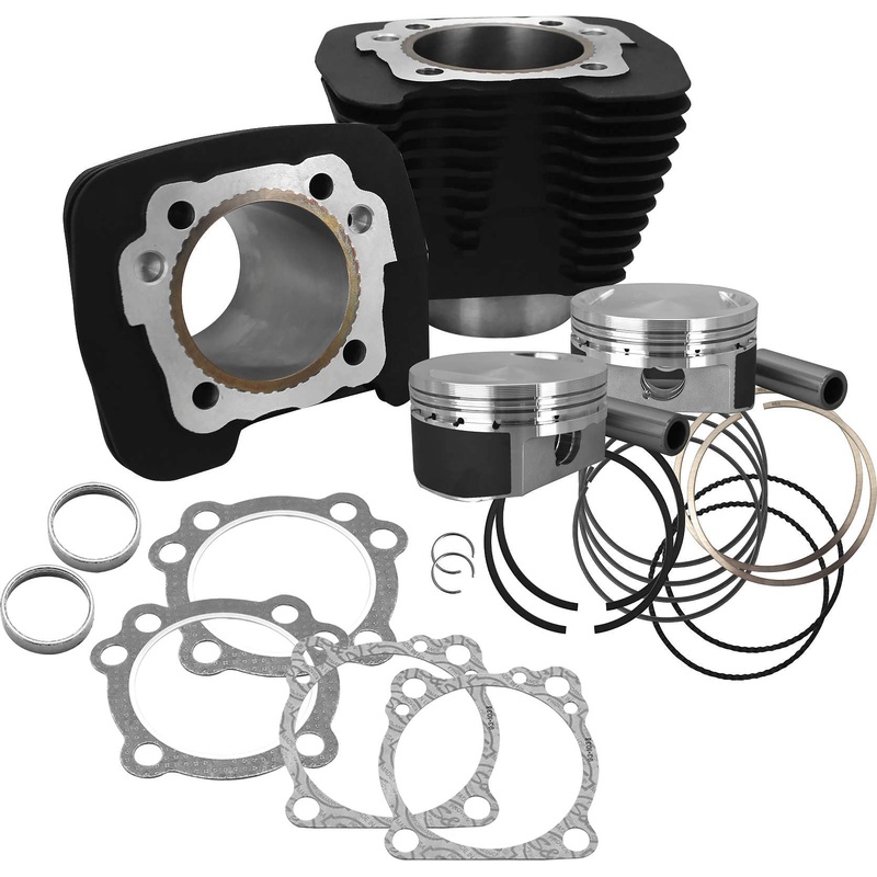 Forged pistonscoated piston skirts with measurement window and S & S logoForged pistons have larger then stock valve pockets and accepts up to 2.00in. valvesAvailable in silver powder coat or wrinkle black powder coat finishKit includes S & S 1250cc piston