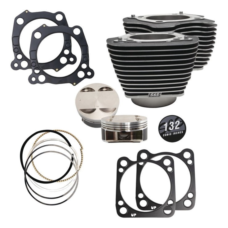These S&S Big Bore Kits are made to take your 107in. M8 up to 129in. and your 114in. M8 up to 132in. If paired with the S&S Stroker Crank you can take your 114in. up to 136in.136in. kits must be used with S&S stroker flywheels (P/N 503293) to achieve the 1